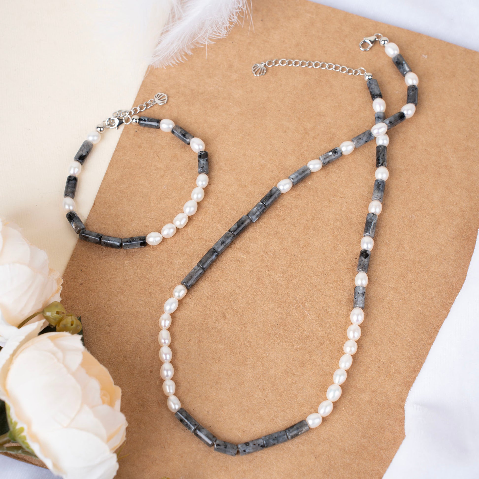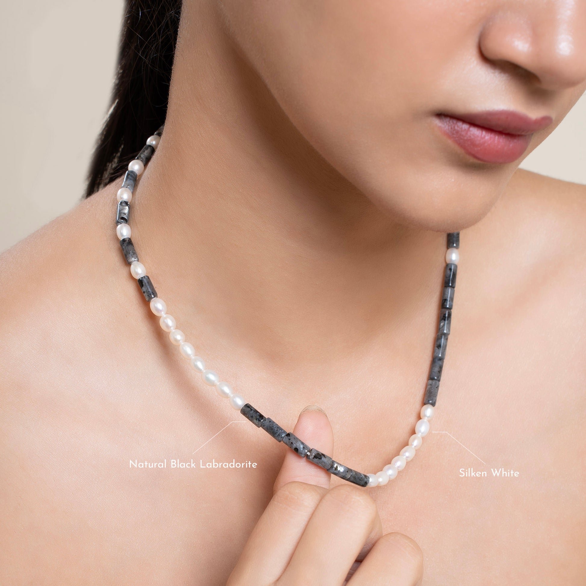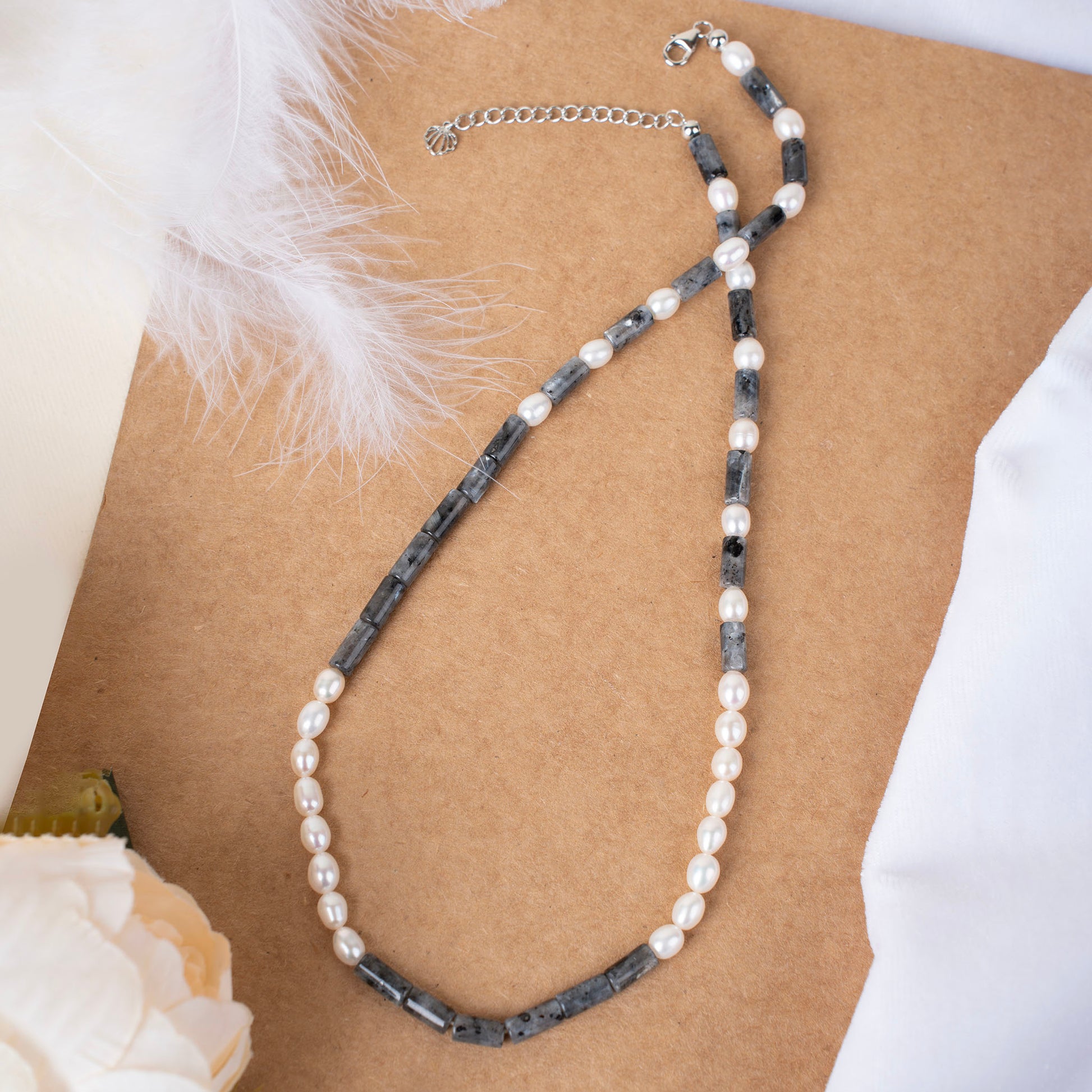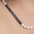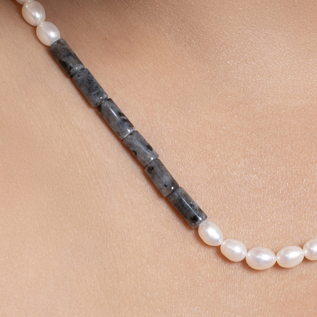 Natural Black Labradorite with Pearl Necklace