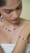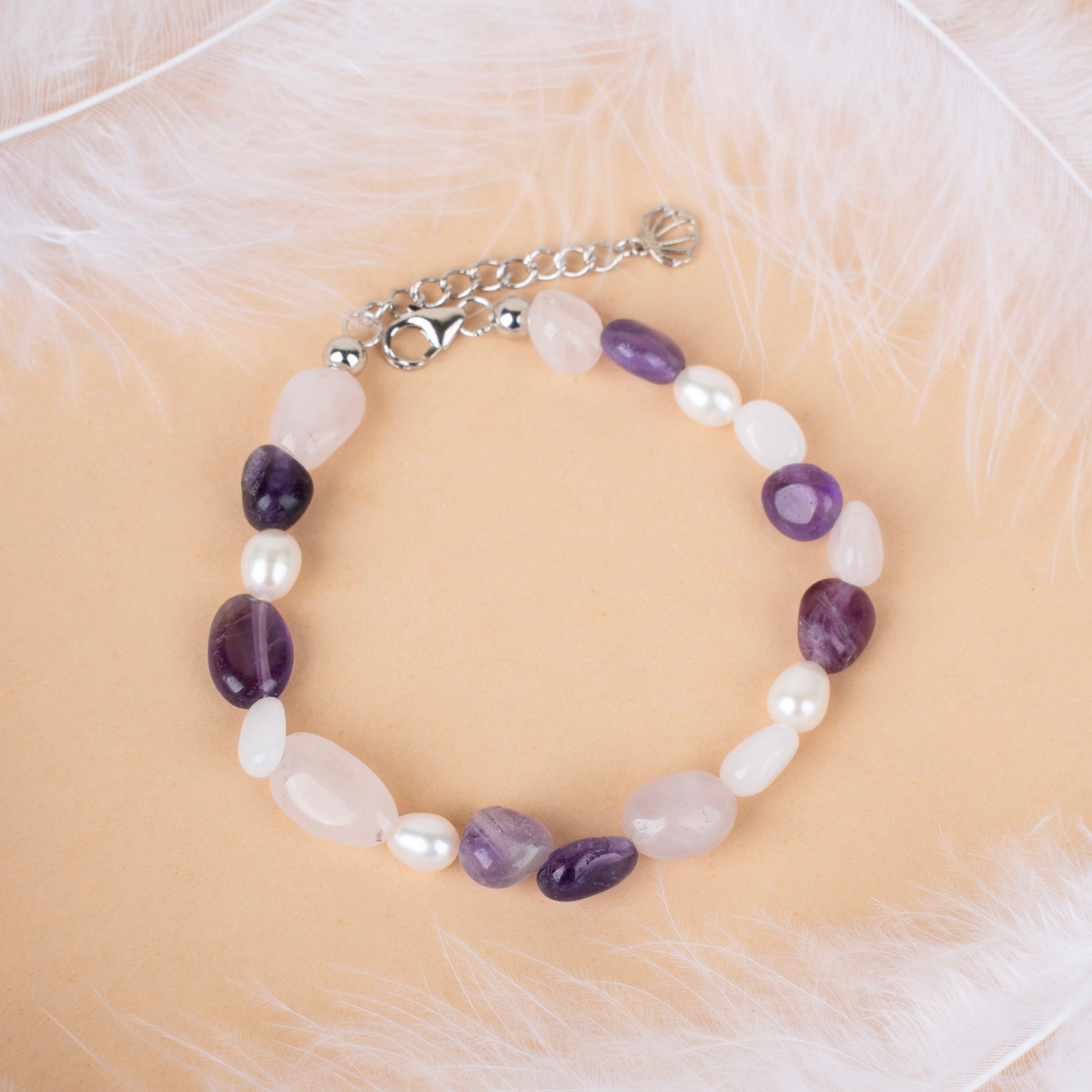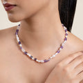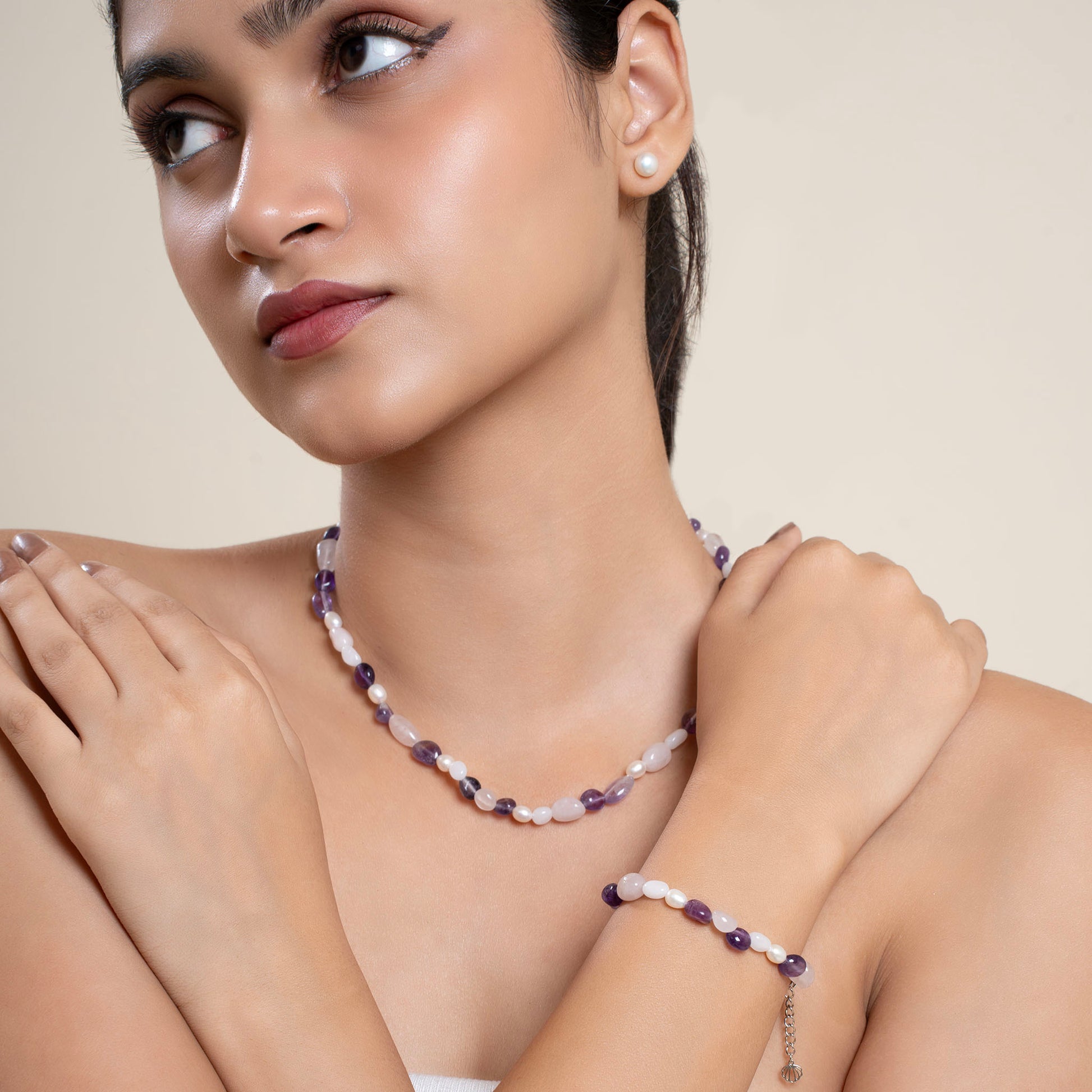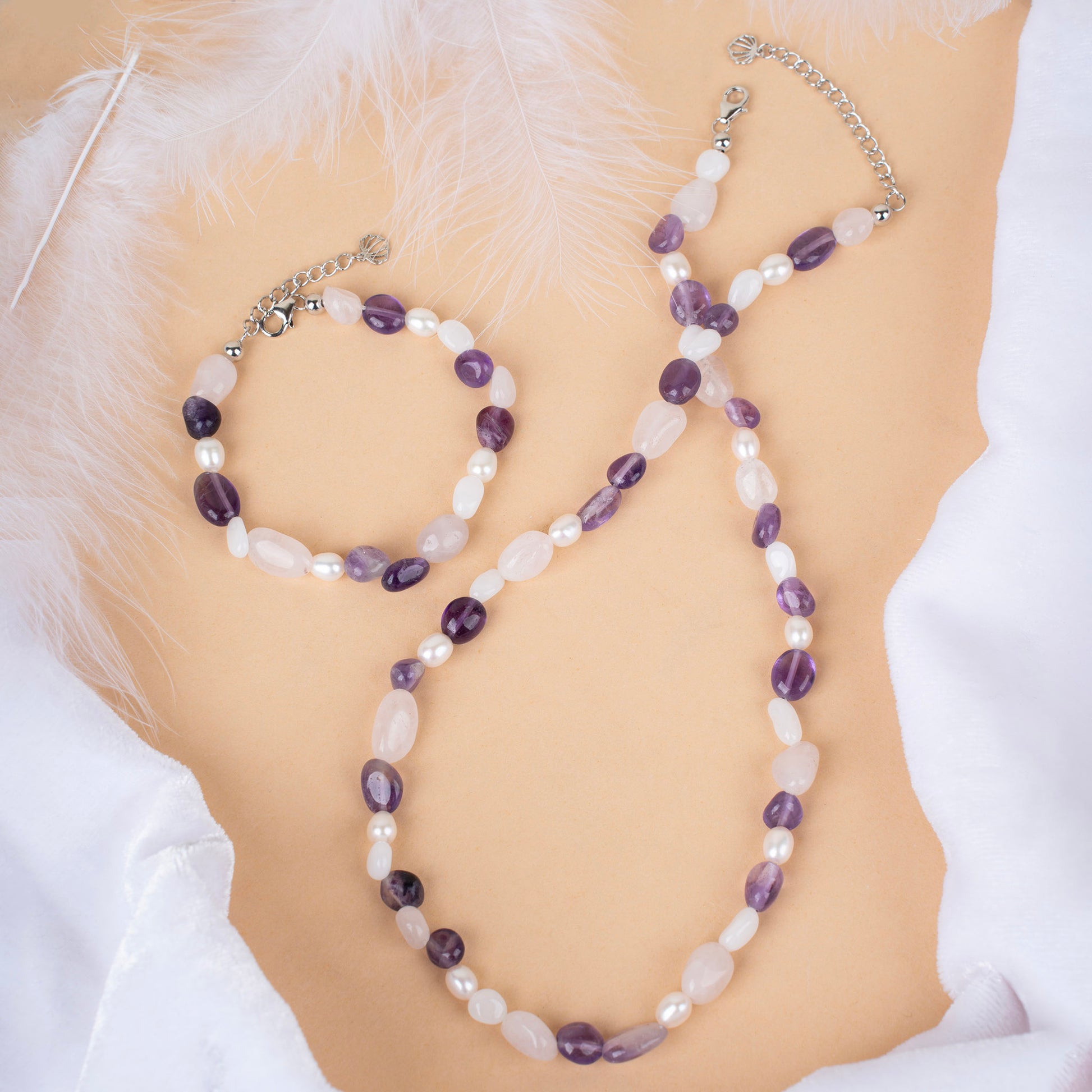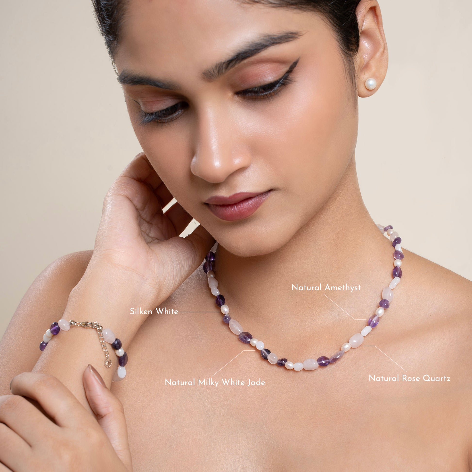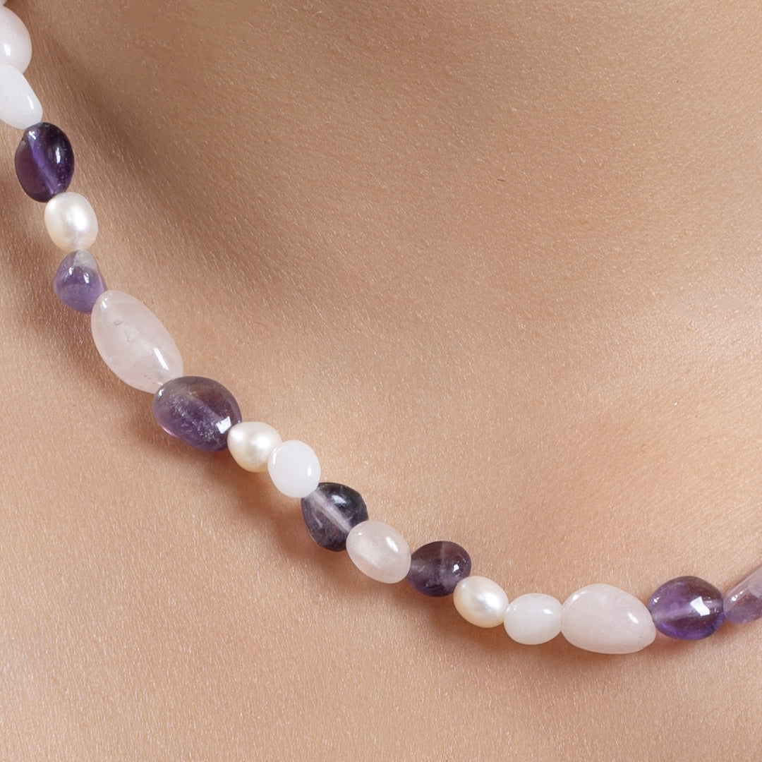 Natural Amethyst, Rose Quartz and Milky White Jade with Pearl Necklace