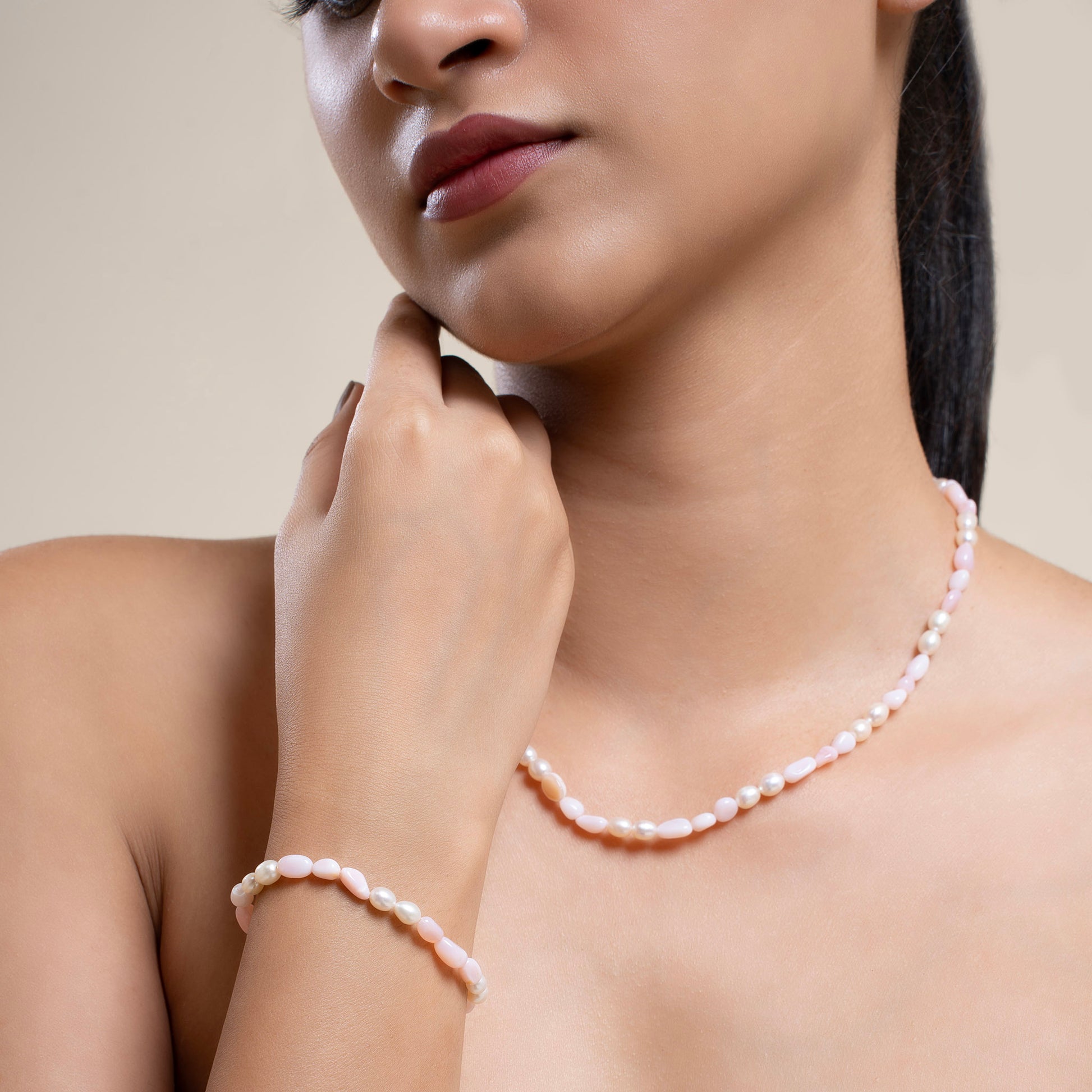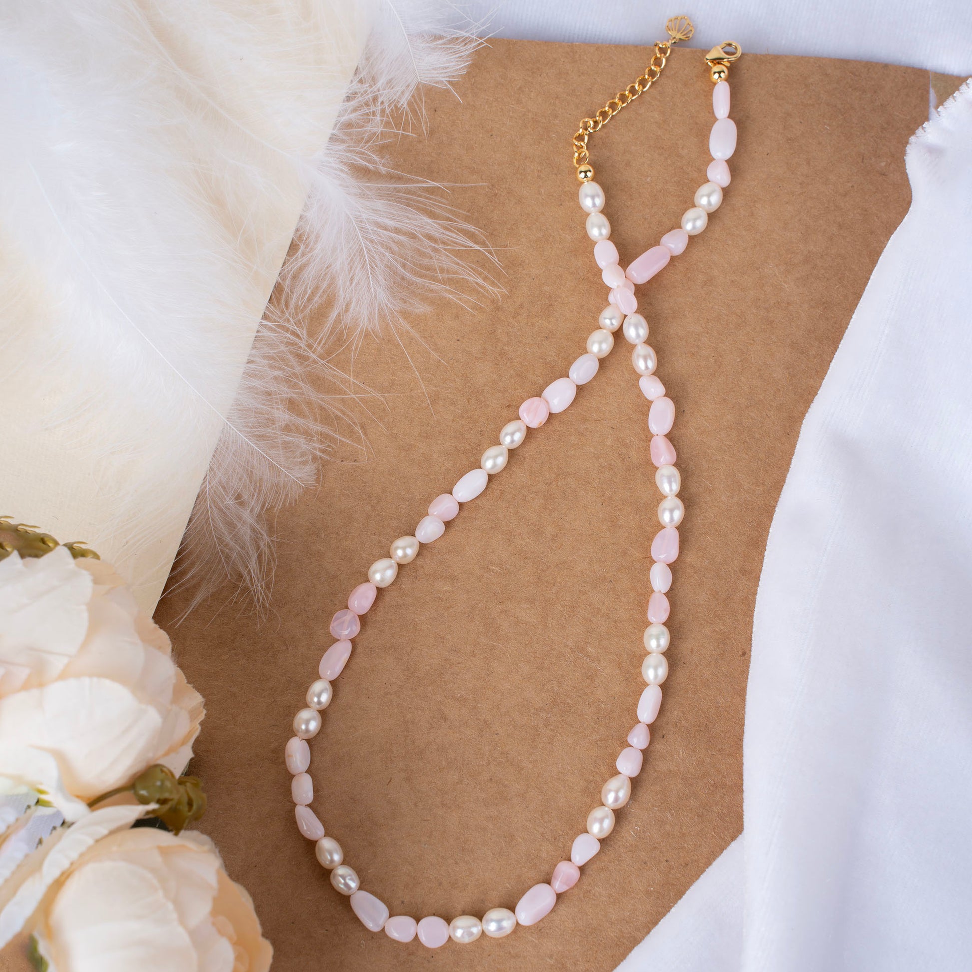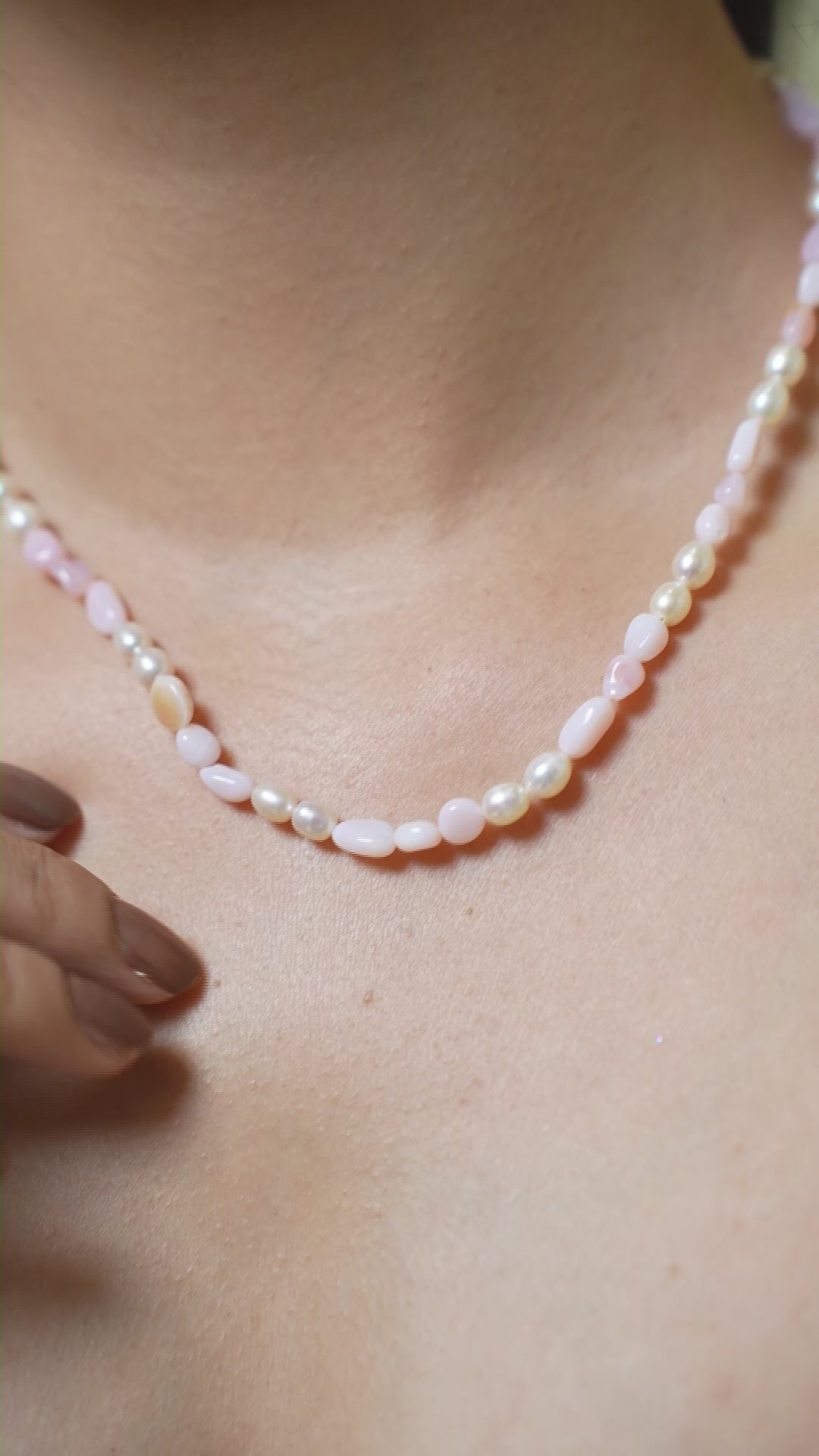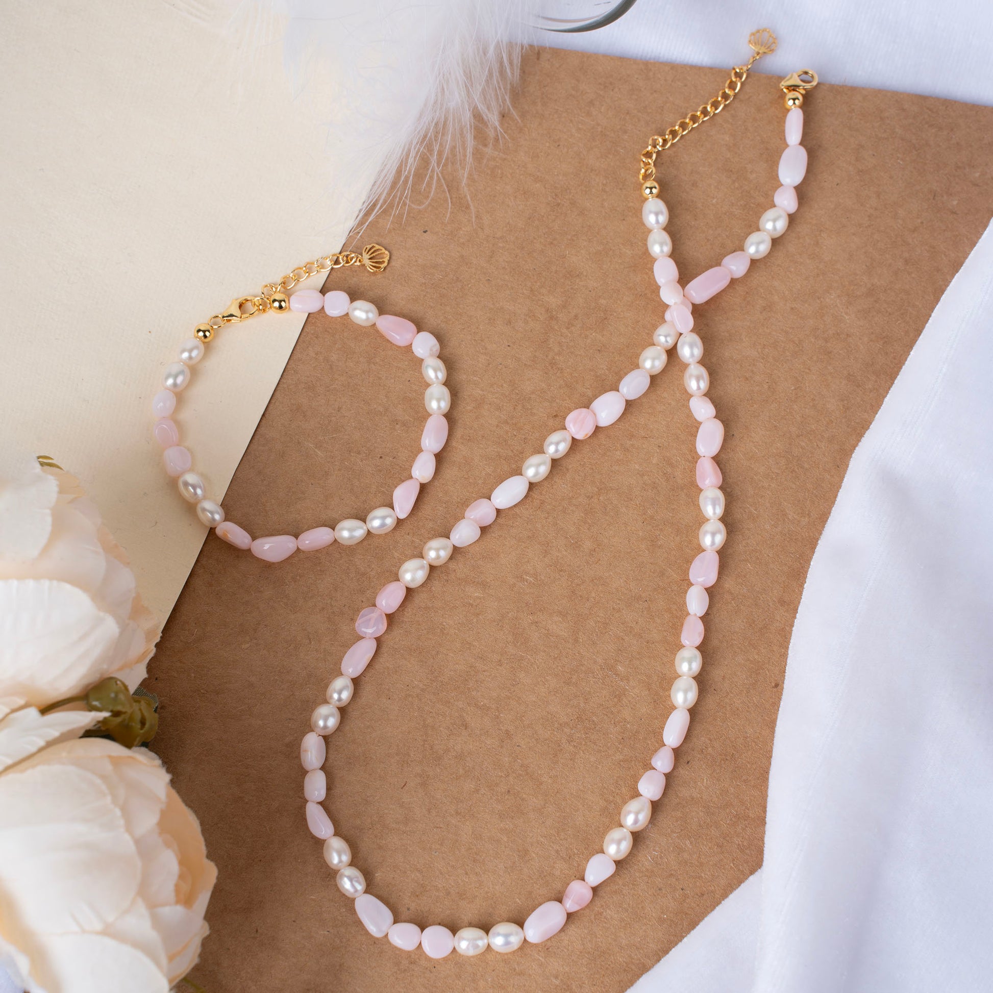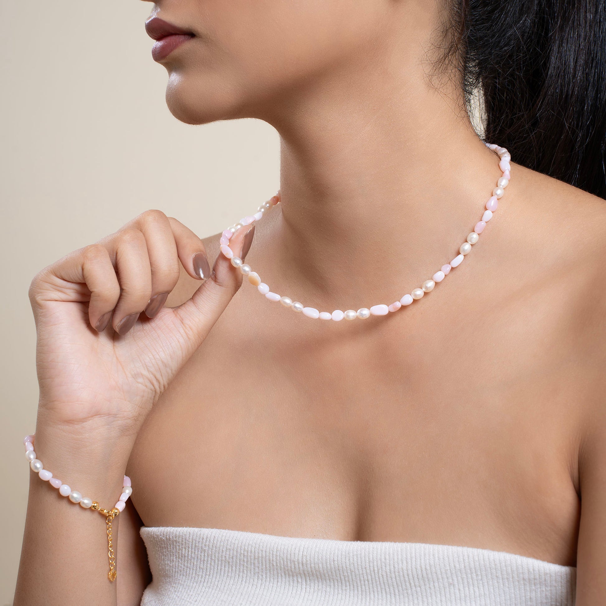 Natural Pink Opal with Pearl Necklace