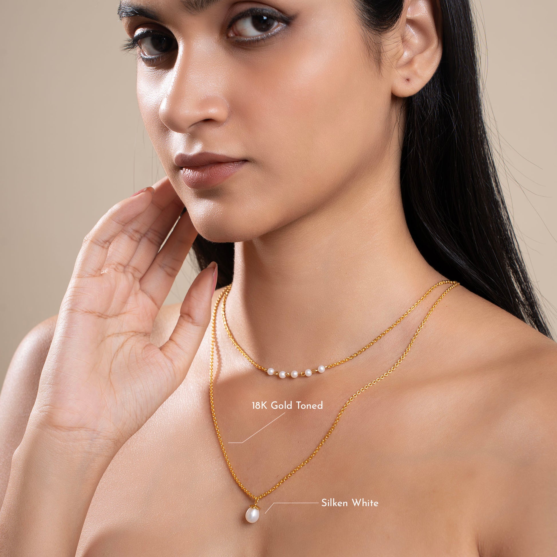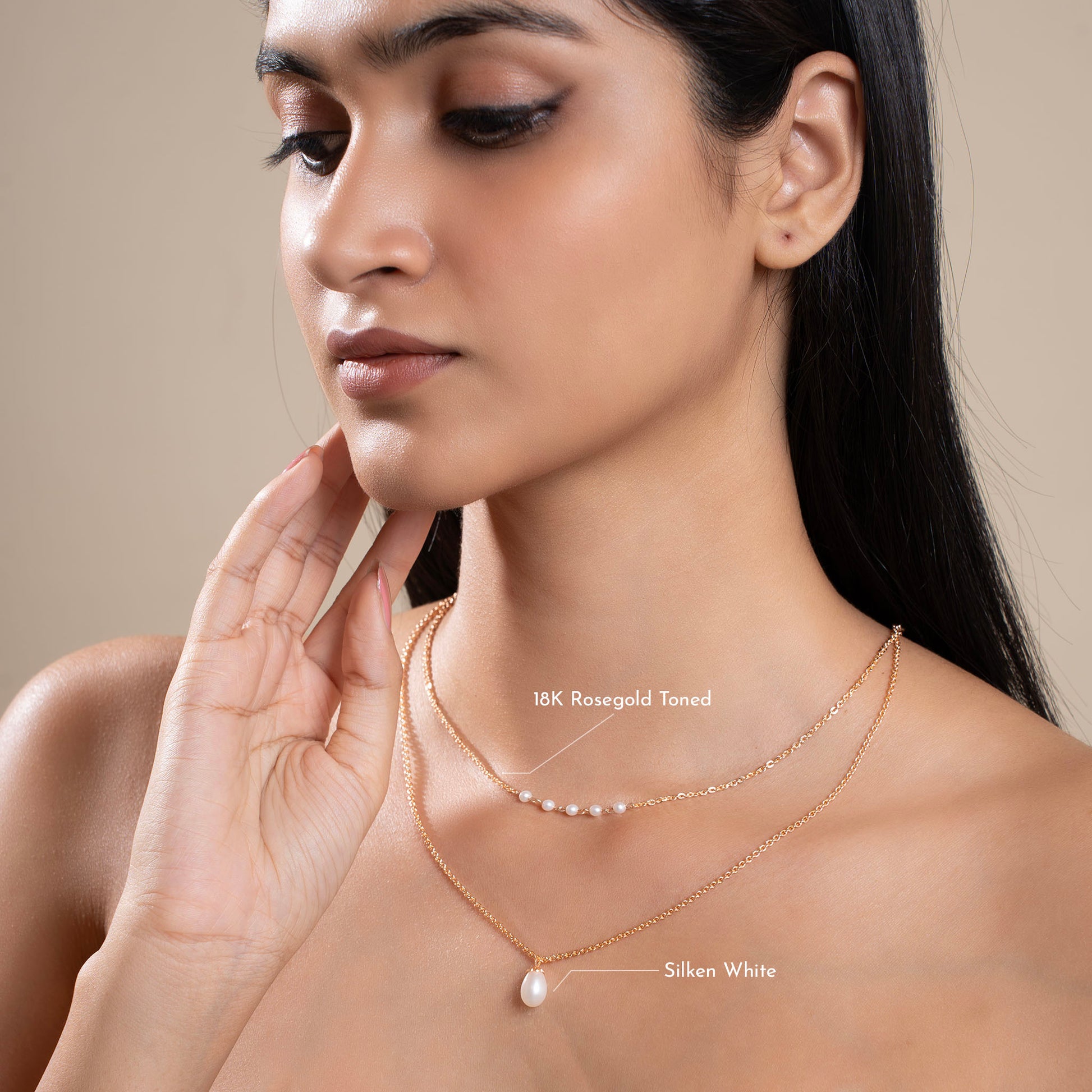 At The Pearl Story, genuine pearl jewellery in 925 silver starts around ₹1,500 and can go up to ₹20,000, depending on the size, lustre, and type of pearl. Every piece combines fine craftsmanship with timeless beauty. The pearls used by The Pearl Story are of really high quality (5A grade) so the prices will be at little higher side.